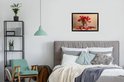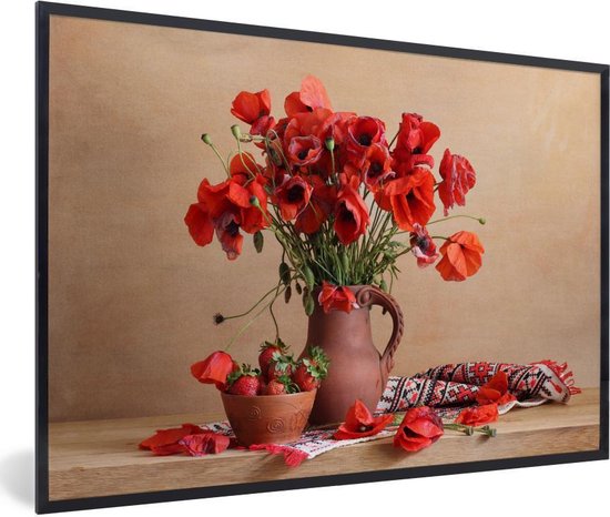 Photo en cadre - Nature morte d'un vase avec des fleurs abstraites rouges Cadre photo noir sans passe-partout 60x40 cm - Affiche sous cadre (Décoration murale salon / chambre)
