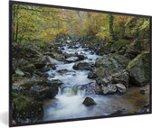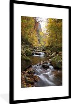 Photo en cadre - Petite rivière dans une vallée automnale du parc national du Harz allemand Cadre photo noir avec passe-partout blanc grand 60x90 cm - Affiche sous cadre (Décoration murale salon / chambre)