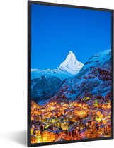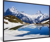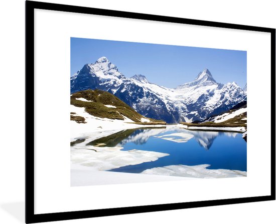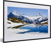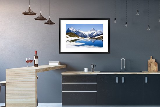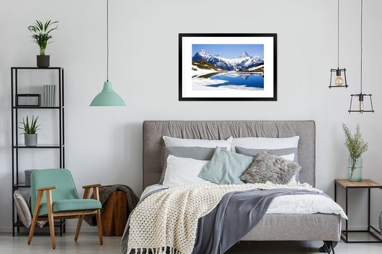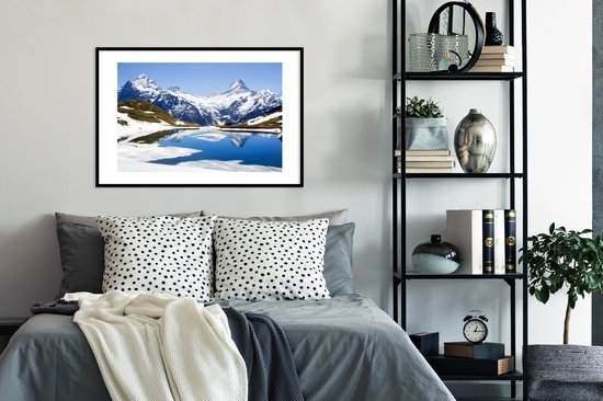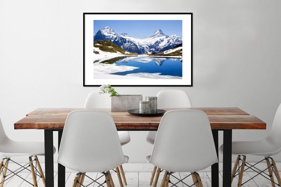 Photo en cadre - Reflet des montagnes enneigées de Suisse dans un cadre photo lac noir avec passe-partout blanc 60x90 90x60 cm - Affiche sous cadre (Décoration murale salon / chambre)