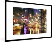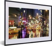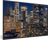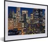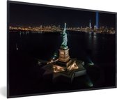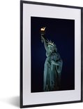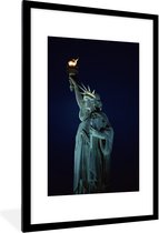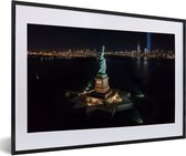 Photo en cadre - Statue de la Liberté illuminée la nuit à New York Cadre photo Amérique noir avec passe-partout blanc 40x60 cm - Affiche sous cadre (Décoration murale salon / chambre)