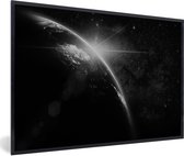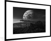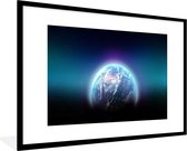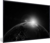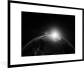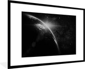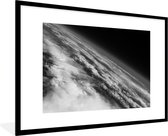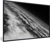 Photo en cadre - Terre aux nombreux nuages de l'espace en cadre photo noir et blanc noir avec passe-partout blanc 60x90 90x60 cm - Affiche en cadre (Décoration murale salon / chambre)