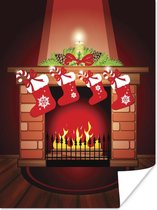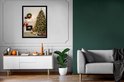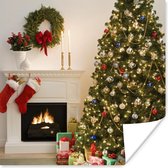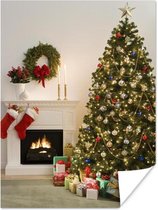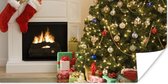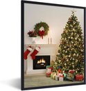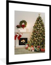 Photo en cadre - Un sapin de Noël avec des cadeaux à côté d'un cadre photo cheminée 60x80 cm - Affiche sous cadre (Décoration murale salon / chambre)