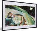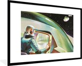Photo en cadre - Une illustration colorée d'un OVNI dans l'espace cadre photo noir avec passe-partout blanc, moyen 60x40 cm - Affiche sous cadre (Décoration murale salon / chambre)