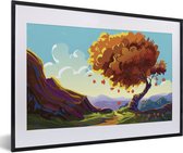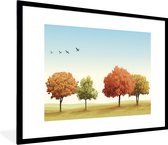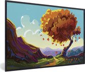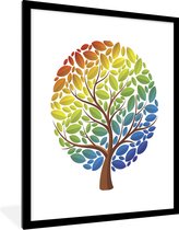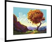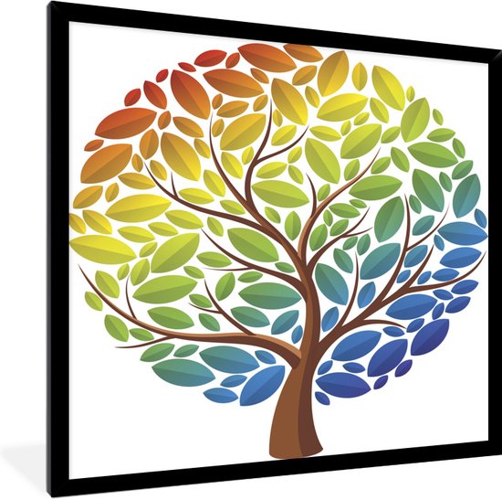 Photo en cadre - Une illustration d'un arbre brun aux feuilles colorées Cadre photo noir 60x80 cm - Affiche sous cadre (Décoration murale salon / chambre)