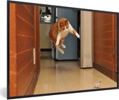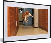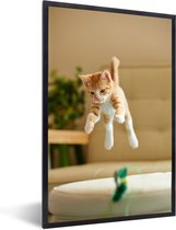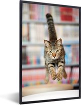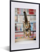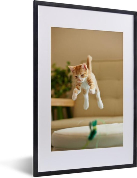 Photo encadrée - Cadre photo chat bondissant noir avec passe-partout blanc 40x60 40x60 cm - Affiche encadrée (Décoration murale salon / chambre)