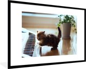 Photo encadrée - Cadre photo chatons curieux noir avec passe partout blanc 60x90 90x60 cm - Affiche encadrée (Décoration murale salon / chambre)