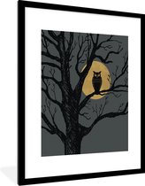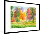 Photo encadrée - Cadre photo petit arbre coloré illustré noir avec passe-partout blanc 60x80 cm - Affiche encadrée (Décoration murale salon / chambre)