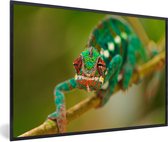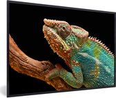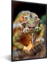 Photo encadrée - Caméléon coloré regarde autour de cadre photo noir sans passe partout 30x20 cm - Affiche encadrée (Décoration murale salon / chambre)