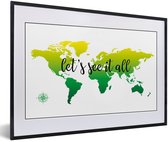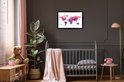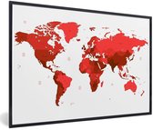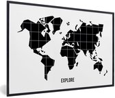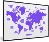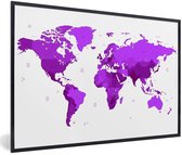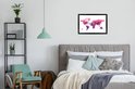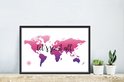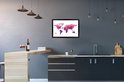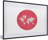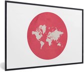 Photo encadrée - Carte du monde rose avec texte et boussole cadre photo noir 60x40 cm - Affiche encadrée (Décoration murale salon / chambre)