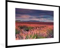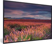 Photo encadrée - Champ de lavande au coucher du soleil calme cadre photo noir avec passe-partout blanc 60x90 90x60 cm - Affiche encadrée (Décoration murale salon / chambre)
