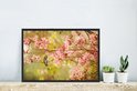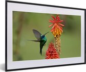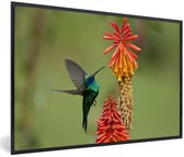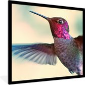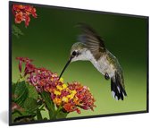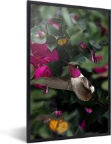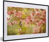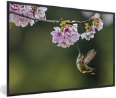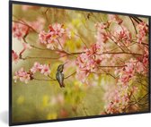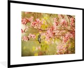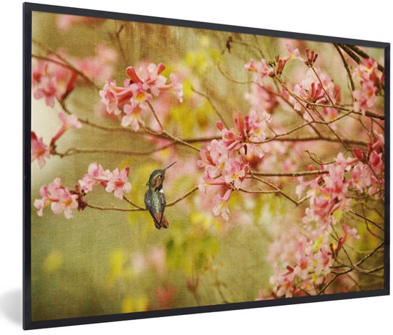 Photo encadrée - Colibri sur une branche d'arbre avec des fleurs roses printanières cadre photo noir 60x40 cm - Affiche encadrée (Décoration murale salon / chambre)