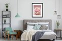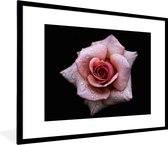 Photo encadrée - Gouttes de rosée sur un seul cadre photo rose rose 60x80 cm - Affiche encadrée (Décoration murale salon / chambre)