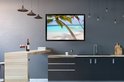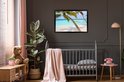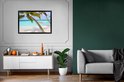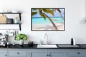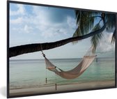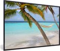Photo encadrée - Hamac près de deux palmiers aux Maldives cadre photo noir 90x60 cm - Affiche encadrée (Décoration murale salon / chambre) / Mer et plage