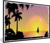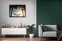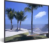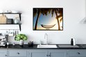 Photo encadrée - Hamac suspendu entre palmiers cadre photo noir 80x60 cm - Affiche encadrée (Décoration murale salon / chambre) / Mer et plage