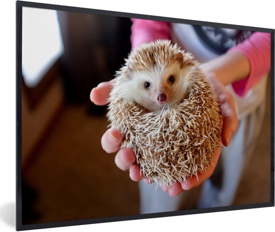 Photo encadrée - Hérisson est tenu cadre photo noir sans passe partout 60x40 cm - Affiche encadrée (Décoration murale salon / chambre)