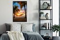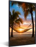 Photo encadrée - Iles des Caraïbes avec une plage et un hamac cadre photo noir 60x90 cm - Affiche encadrée (Décoration murale salon / chambre) / Mer et plage