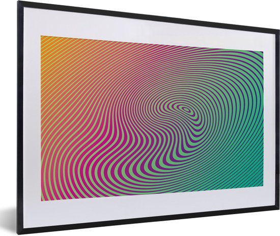 Photo encadrée - Illusion d'optique avec cadre photo cercles abstraits noir avec passe-partout blanc 40x60 60x40 cm - Affiche encadrée (Décoration murale salon / chambre)
