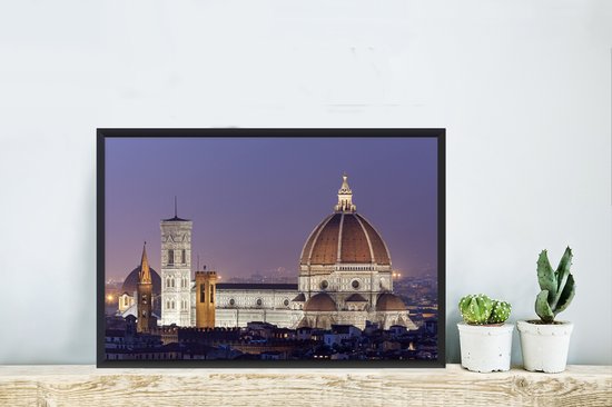 Photo encadrée - Le Dom de Florence avec ciel violet en arrière-plan en Italie cadre photo noir 60x40 cm - Affiche encadrée (Décoration murale salon / chambre)