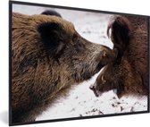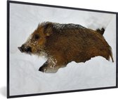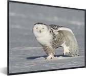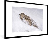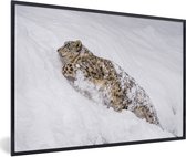 Photo encadrée - Léopard des neiges marchant dans la neige cadre photo noir sans passe partout 30x20 cm - Affiche encadrée (Décoration murale salon / chambre)