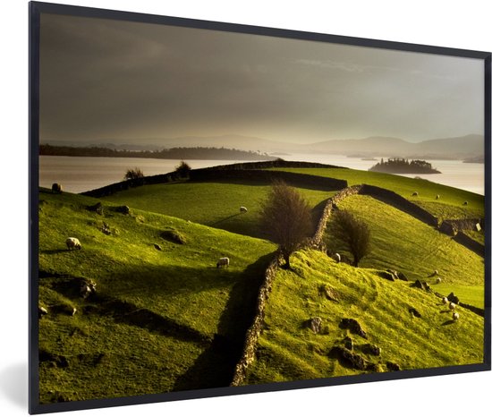 Photo encadrée - Murs de pierre dans la campagne irlandaise cadre photo noir sans passe-partout 60x40 cm - Affiche encadrée (Décoration murale salon / chambre)