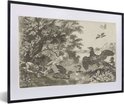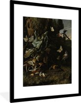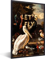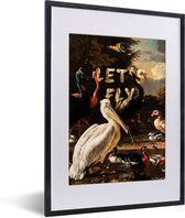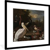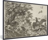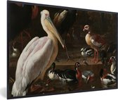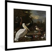 Photo encadrée - Oiseaux aquatiques et chien - Peinture de Melchior d'Hondecoeter cadre photo noir avec passe-partout blanc 60x40 cm - Affiche encadrée (Décoration murale salon / chambre)