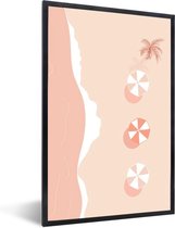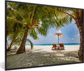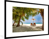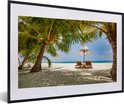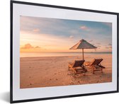Photo encadrée - Palmiers sur une plage tropicale lors d'un coucher de soleil Cadre photo noir avec passe-partout blanc 60x40 cm - Affiche encadrée (Décoration murale salon / chambre) / Mer et plage