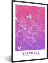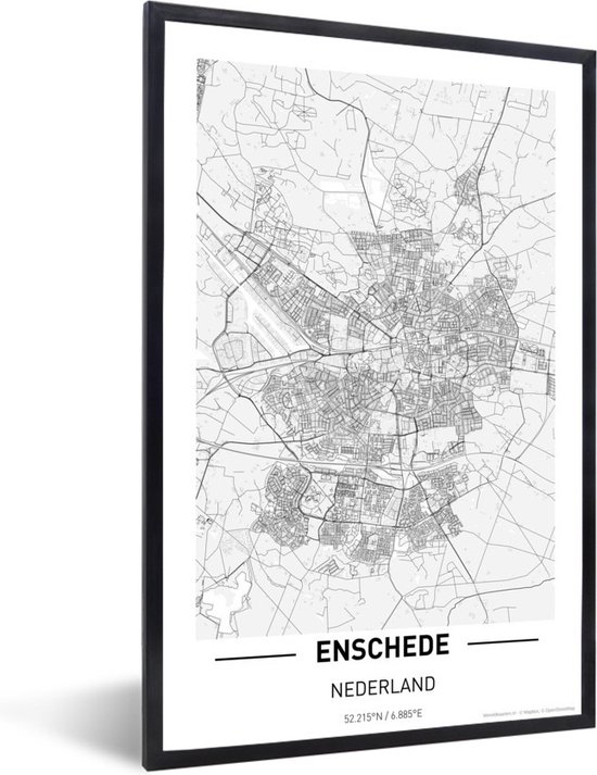 Photo encadrée - Plan de ville Cadre photo Enschede noir sans passe partout - Plan 60x90 cm - Affiche encadrée (Décoration murale salon / chambre)