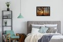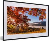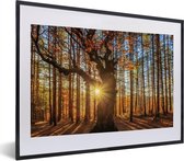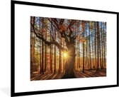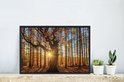 Photo encadrée - Rayons de soleil derrière cadre photo forêt d'automne noir sans passe partout 60x40 cm - Affiche encadrée (Décoration murale salon / chambre)