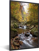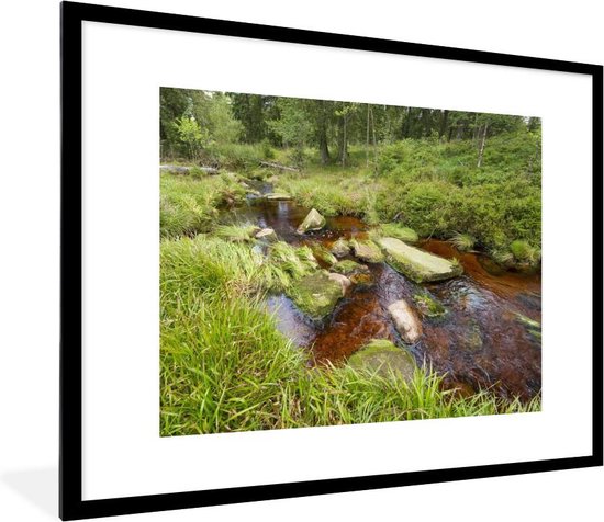 Photo encadrée - Rivière teintée rouge dans le parc national allemand du Harz Cadre photo noir avec passe-partout blanc 80x60 cm - Affiche encadrée (Décoration murale salon / chambre)