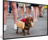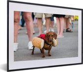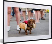 Photo encadrée - Teckel habillé en cadre photo hot dog noir sans passe-partout 120x80 cm - Affiche encadrée (Décoration murale salon / chambre)