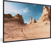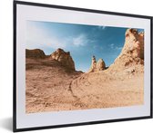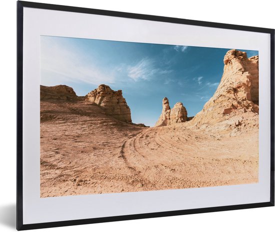 Photo encadrée - Traces de pneus dans le désert cadre photo noir avec passe partout blanc 40x60 60x40 cm - Affiche encadrée (Décoration murale salon / chambre)