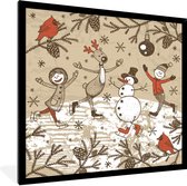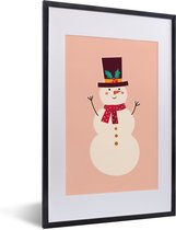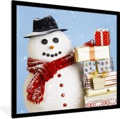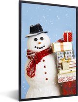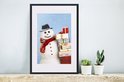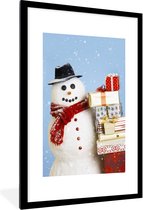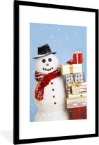Photo encadrée - Un bonhomme de neige avec des cadeaux de Noël Cadre photo noir avec passe-partout blanc, moyen 40x60 cm - Affiche encadrée (Décoration murale salon / chambre)