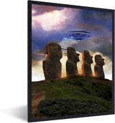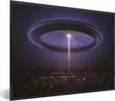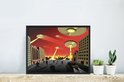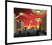 Photo encadrée - Une illustration d'OVNIS attaquant un cadre photo de ville noir 40x30 cm - Affiche encadrée (Décoration murale salon / chambre)