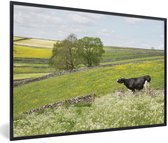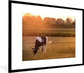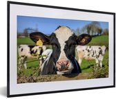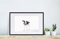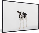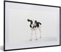 Photo encadrée - Veau vache frison sur fond blanc Cadre photo noir avec passe-partout blanc 60x40 cm - Affiche encadrée (Décoration murale salon / chambre)