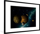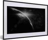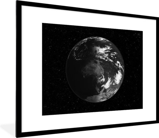 Photo encadrée - Vue satellite de la terre en cadre photo noir et blanc noir avec passe partout blanc 60x80 80x60 cm - Affiche encadrée (Décoration murale salon / chambre)