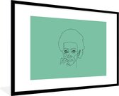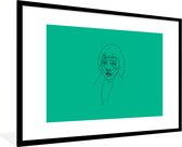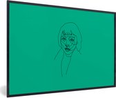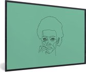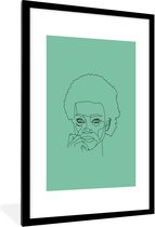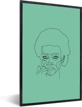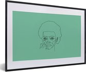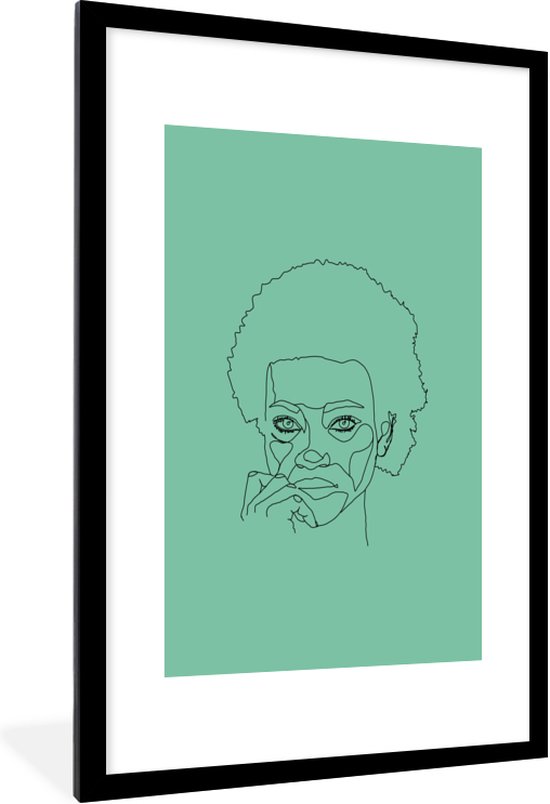 Photo Line femme avec afro sur fond vert cadre photo noir avec passe partout blanc 80x120 80x120 cm - Affiche encadrée (Décoration murale salon / chambre)