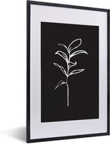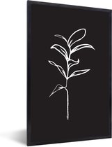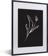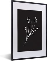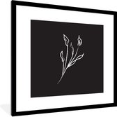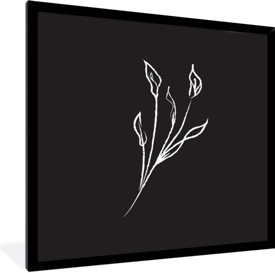 Photo Line- Illustration art ligne Lys d'arum sur fond noir Cadre photo noir sans passe-partout 40x40 cm - Affiche encadrée (Décoration murale salon / chambre)