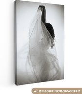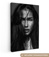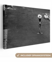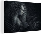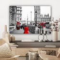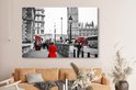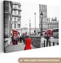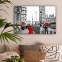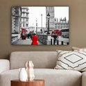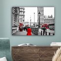Photo Zwart et blanc d'une femme en robe rouge Toile 180x120 cm - Tirage photo sur Toile (Décoration murale salon / chambre) XXL / Groot format!