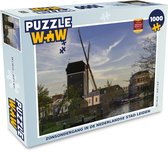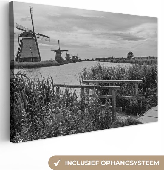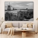 Photo Zwart et blanc des moulins à vent de Kinderdijk aux Nederland Toile 180x120 cm - Tirage photo sur toile (Décoration murale salon / chambre) XXL / Groot format!