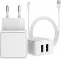 Trouvé! Un chargeur iPhone rapide avec double ports USB incluant un câble USB vers Lightning de 1 mètre de long ! Cette prise iPhone avec câble de charge pour appareils Apple de Phreeze est équipée de toutes les fonctions de sécurité nécessaires. L'adaptateur est fabriqué dans un matériau de haute qualité pour charger votre Apple iPhone en toute sécurité et rapidement. Le câble de charge Lightning de 1 mètre inclus est très robuste et flexible, donc plus de soucis avec les câbles qui se cassent.