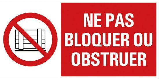 Panneau 300x150 mm Picto Texte - Ne pas bloquer ou obstruer - 1270150584 - EAN 8711234128744 - plastique dur polystyrène 1 5 mm