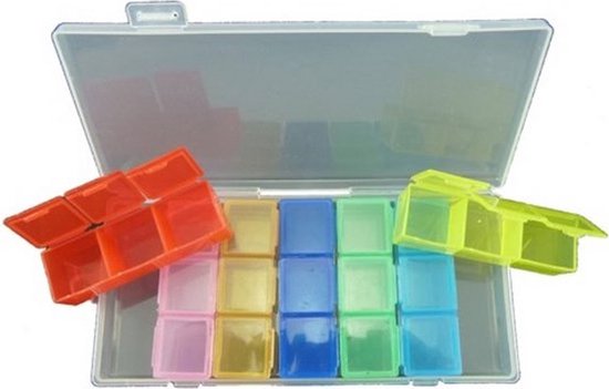 Le pilulier en plastique Knaak offre une gestion claire des médicaments pour la semaine avec 7 jours et 3 compartiments, disponibles en différentes couleurs.