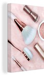 Les pinceaux pour appliquer le maquillage sur votre visage sont sur fond rose.