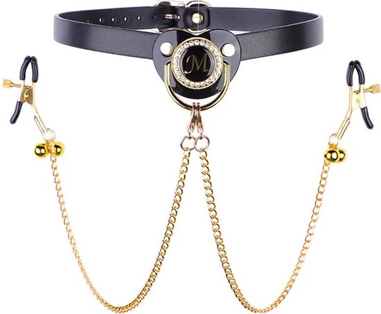 Pinces à mamelon + tétine + collier - BDSM - Cosplay - Esclave - Bébé Adulte - Ajustable - Roleplay