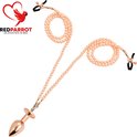 Pinces à tétons chaîne de Luxe avec un plug anal fixe. Très unique et de très bonne qualité.