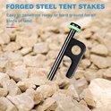 - Anneau fluorescent : Chaque hareng est doté d'un anneau fluorescent frappant, de sorte que vous pouvez facilement les trouver même dans des conditions de faible luminosité ou dans l'obscurité. Moins de risques de trébucher et de perdre les chevilles.