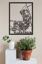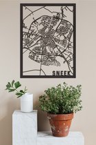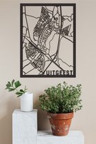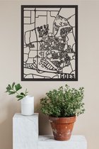 Plan de la Ville en Bois Heerenveen Zwart Mdf 100x75cm Décoration murale pour City Shapes à Suspendre