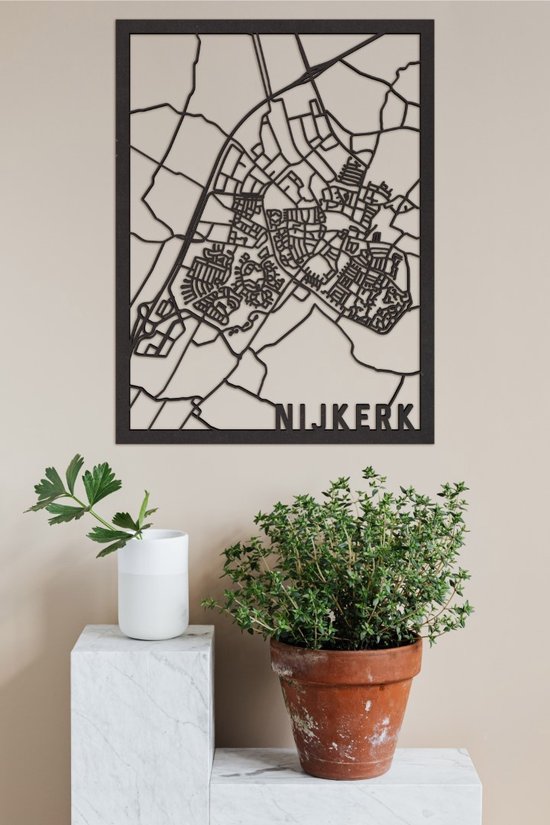 Plan de la Ville en Bois Nijkerk Zwart Mdf 100x75cm Décoration murale pour City Shapes à Suspendre