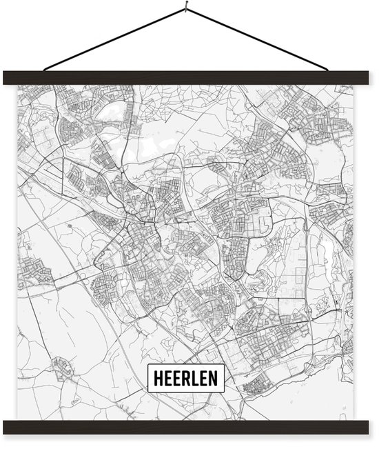 Plan de ville affiche textielposter Heerlen lamelles noires - Carte 40x40 cm - Tirage photo sur plaque scolaire (décoration murale salon / chambre)