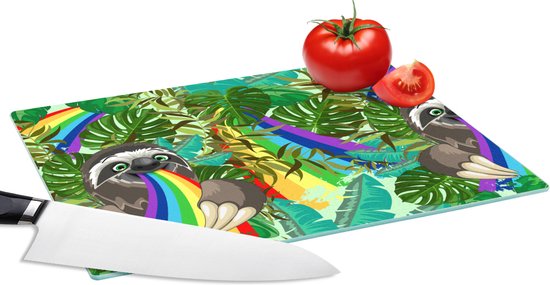Protège plan de travail - Paresseux - Arc-en-ciel - Feuilles - Motifs - Planches à découper